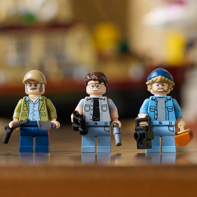 The JAWS LEGO set features the Orca boat, complete with an intricate interior and a plethora of fishing equipment, including the famous yellow barrels. No JAWS set would be complete without the minifigures of Martin Brody, Matt Hooper, and Quint, as well as the star of the show, Bruce the Shark.